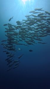 • キラキラ輝くギンガメアジの群れ
